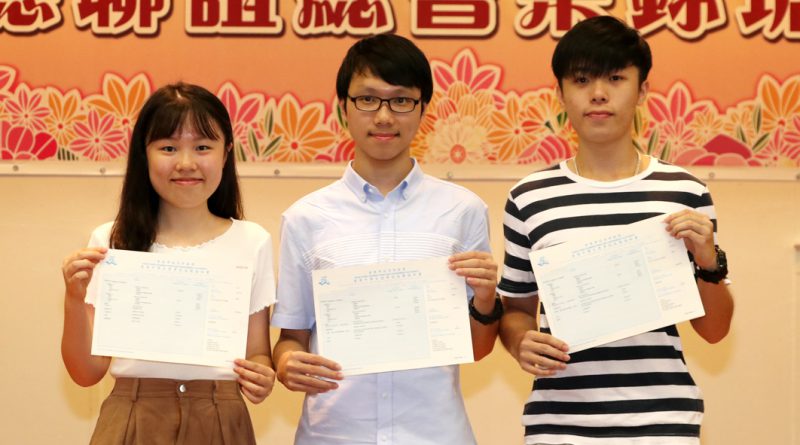 2019中學文憑考試傑出學生 ,梁煦媛同學(左)、黃諾謙同學(中)考獲4科5**; 馮家俊同學(右) 考獲3科5**佳績。