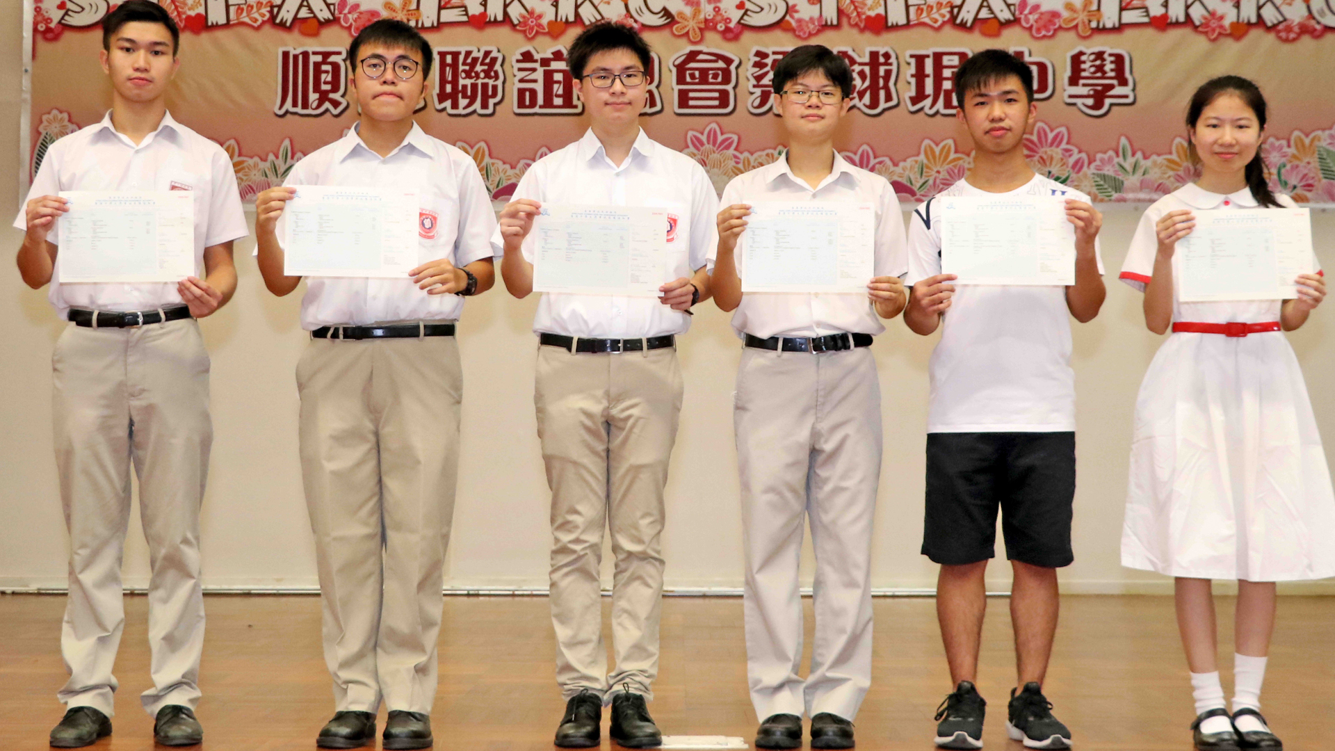Latest News 2020年香港中學文憑考試成績優異同學 馮柏瑋(右三)考獲4科5** 黃鉦然(左三)、陳卓宏(左二)、游柏曦(右二)考獲3科5** 徐正豪(左一)、李斯穎(右一)、考獲2科5**