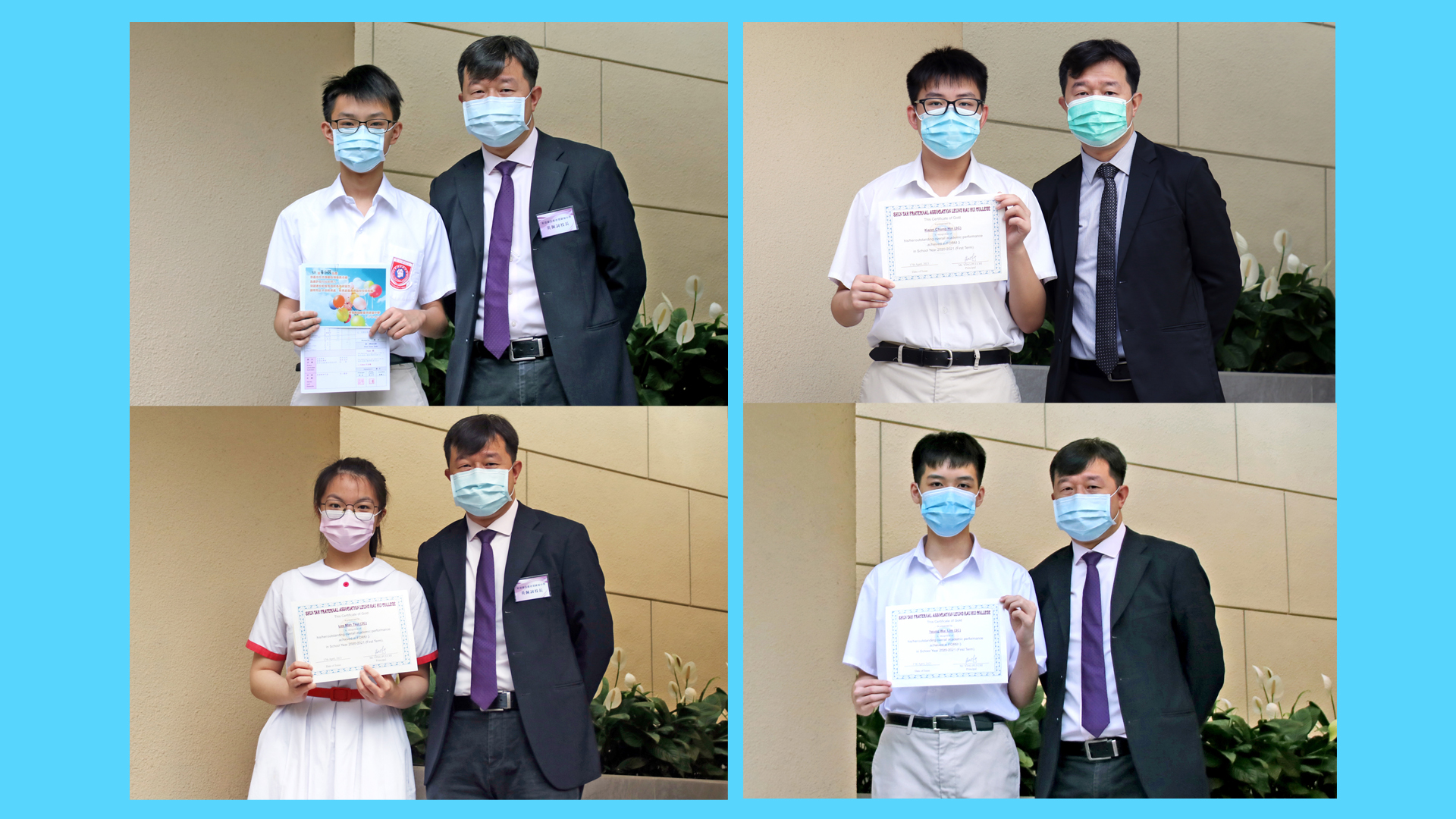 校長於2020-2021年度家長日與中三級成績優異同學合照