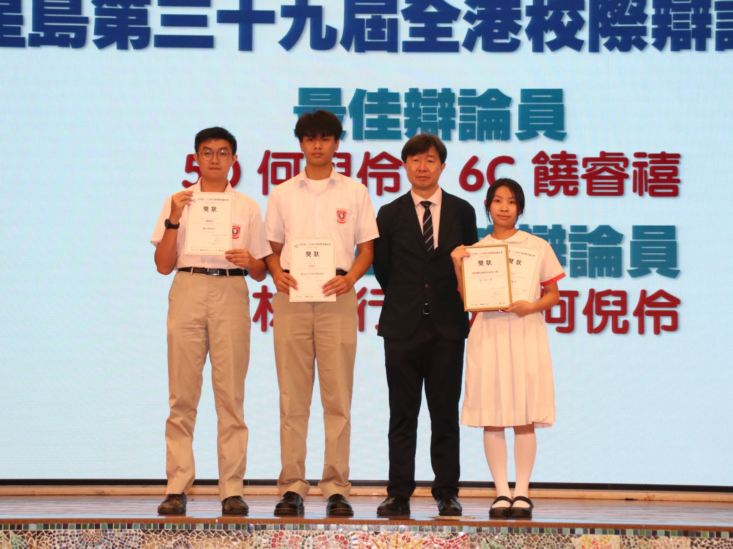 Prizes & Awards 23/24 星島第三十九屆全港校際辯論比賽 最佳辯論員:5D 何倪伶、6C 饒睿禧 最佳交互問答辯論員:4C 林韋行、5D 何倪伶 本校中文辯論隊晉級全港八強,獲得中文組最佳進步獎