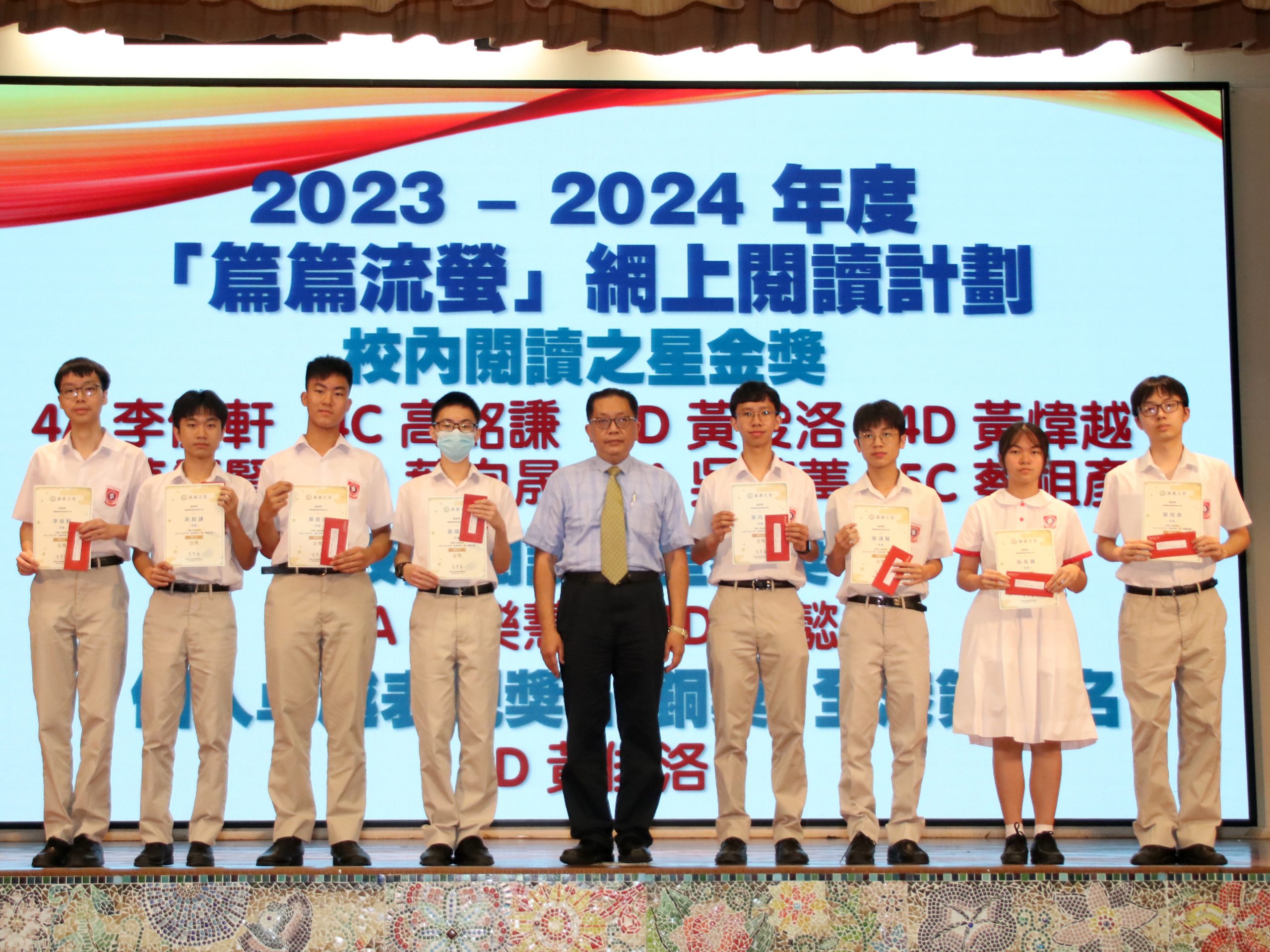 校內閱讀之星金獎:4A 李俊軒、4C 高銘謙、4D 黃俊洛、4D 黃煒越、4D 莫頌賢、4D 葉向晟、5A 吳燕菁、5C 蔡祖彥