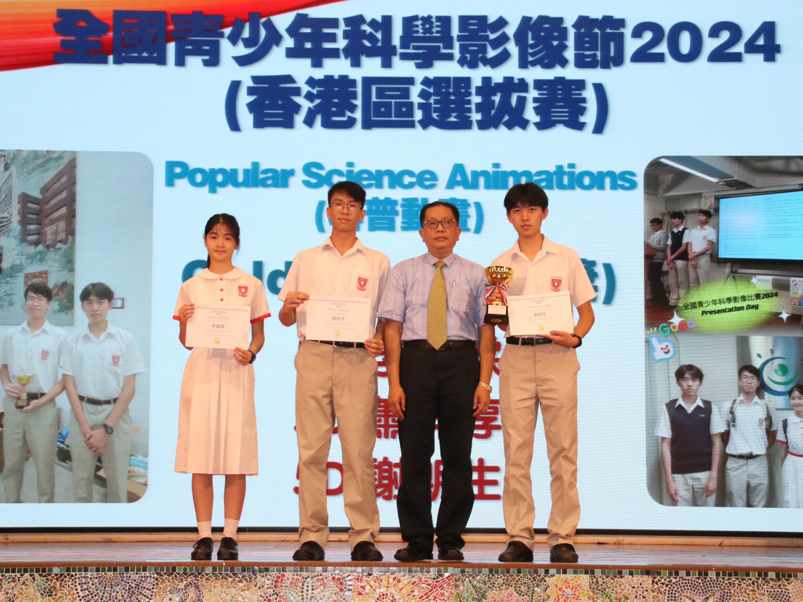 Prizes & Awards 23/24 全國青少年科學影像節2024(香港區選拔賽)- Popular Science Animations (科普動畫) 高中組 金獎:5D 李穎霖、5D 蕭梓淳、5D 謝朗生