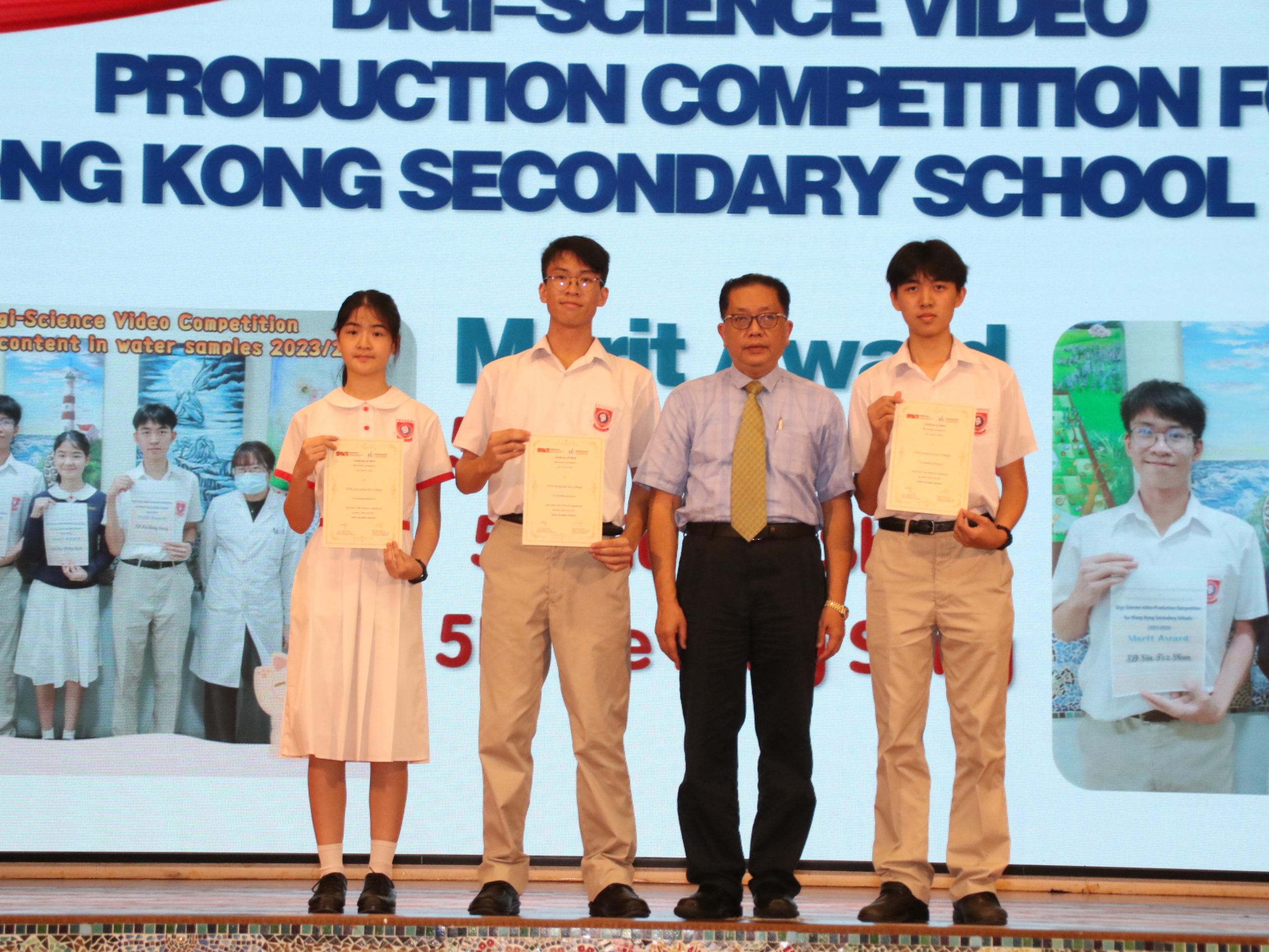 Prizes & Awards 23/24 Digi-Science Video Production Competition for Hong Kong Secondary School 2023-24 Merit award: 5D Lee Wing Lam, 5D Siu Tzs Shun, 5D Tse Long Sang