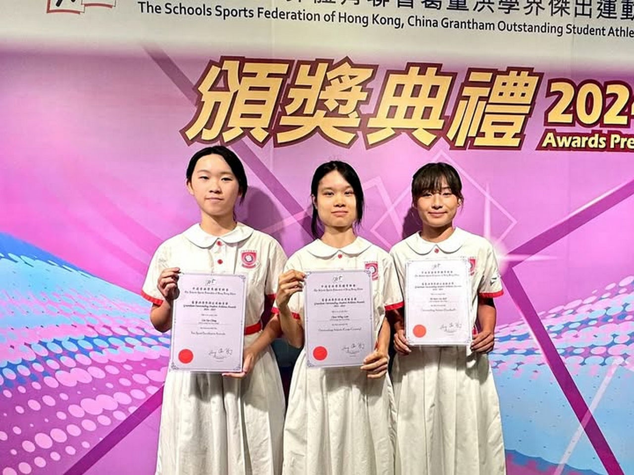 Latest Prizes & Awards 24/25 2024 – 2025年度葛量洪學界傑出運動員獎 本校中六級同學榮獲2024 – 2025年度葛量洪學界傑出運動員獎(單項運動)。女子手球:6B 何汶利(圖右);女子越野:6D周泳淋(圖中);運動員十優 : 6A 練紫晴(圖左)