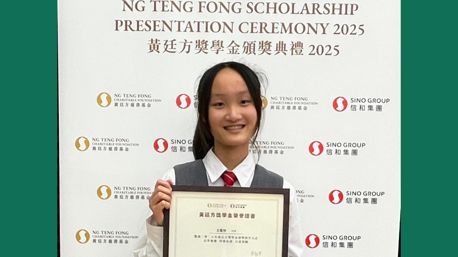 中五級王筱伶同學品學兼優,榮獲2025年度「黃廷方獎學金」。
